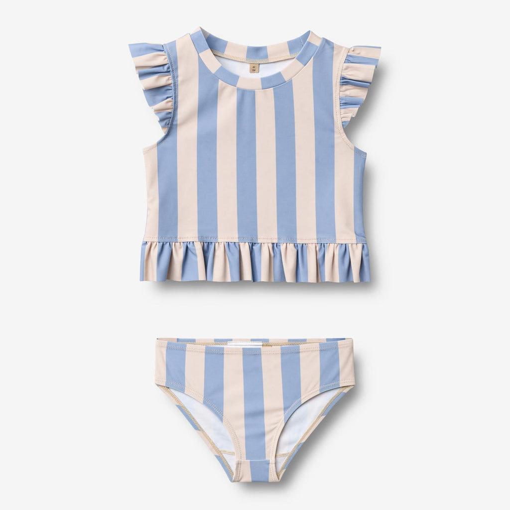 Printet to-delt badesæt, designet til komfort og sjov for børn. - Tætsiddende- SignaturprintOverdel: - Flæsedetalje ved skuldre og bundkant- Ekstra længde for øget solbeskyttelseUnderdel: - Almindelig pasformBadetøjet sikrer en tætsiddende pasform og tillader ubegrænset bevægelse under vandaktiviteter. Det er perfekt til en dag på stranden eller ved swimmingpoolen under sydens sol. Al vores badetøj er primært fremstillet i genanvendt polyester og er behageligt for dit barn at have på og bevæge sig i. Badetøjet er med UV 40+/UPF 40+ beskyttelse.