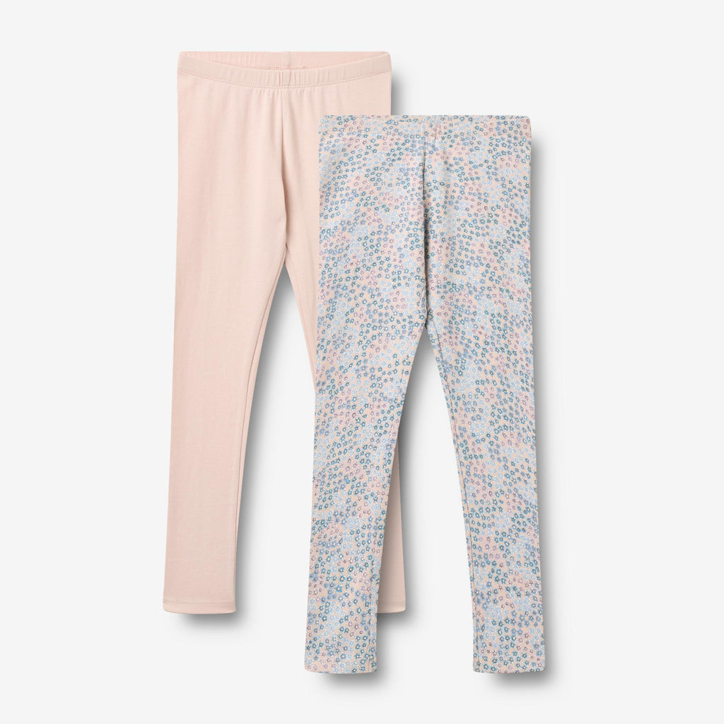 Sæt af to jersey leggings i blød økologisk bomuld til børn.- Figursyet- Elastik i taljen- En i ensfarvet- En i signaturprintWheats bløde leggings er unisex og er en sand klassiker i dit barns garderobe. Leggingsene er figursyet og har en elastik i taljen. De kan nemt styles alene med en sweatshirt eller strik, eller som et ekstra lag under en af vores kjoler og bukser.
