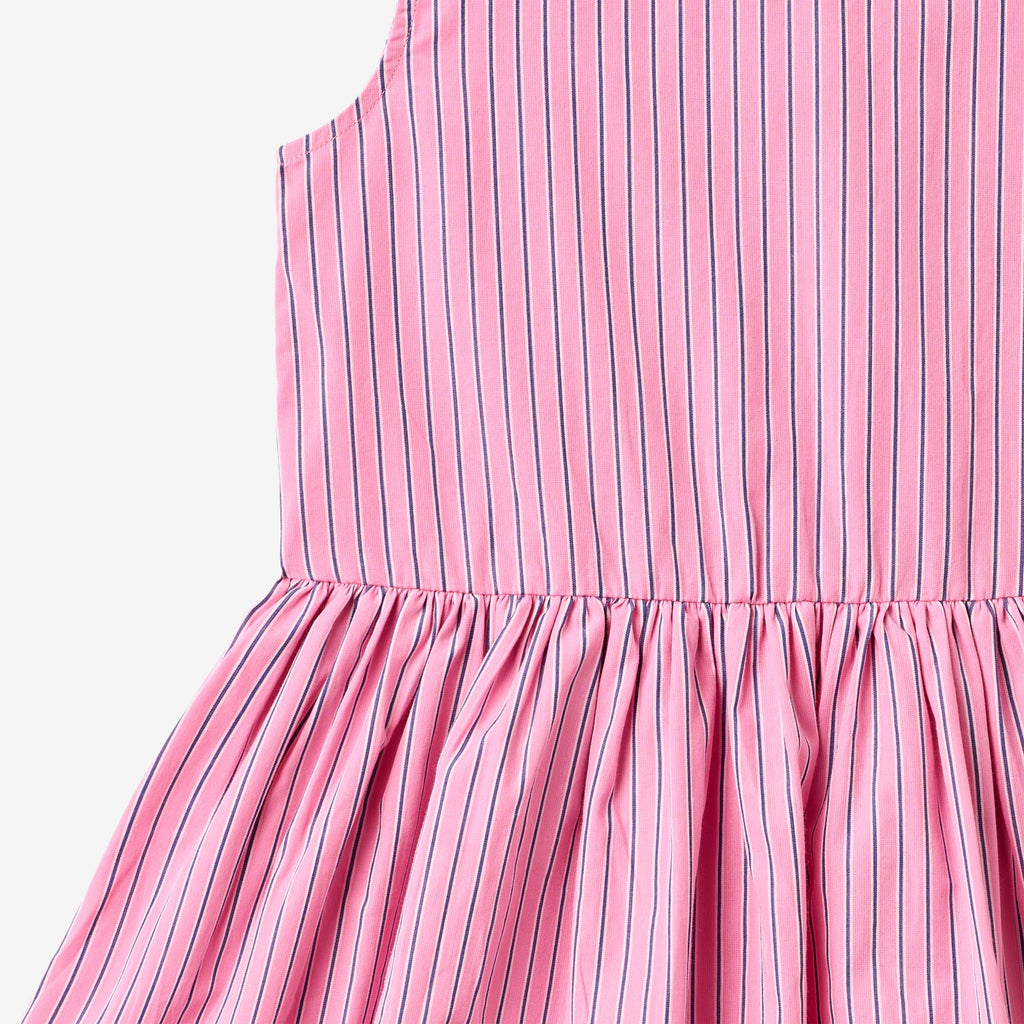 Ærmeløs kjole med striber i blød økologisk bomuld til børn.- Bærestykke i taljen med rynk nedenunder- Knaplukning bagpå- Længere bagpå- Stribet poplinEn vævet sommerkjole er uundværlig til solrige dage. Let, luftig og designet til ubesværet bevægelse, denne kjole er perfekt til eventyr i varmen. Med sine friske farver fanger denne kjole sommerens essens, uanset om det er til daglig leg eller særlige lejligheder.