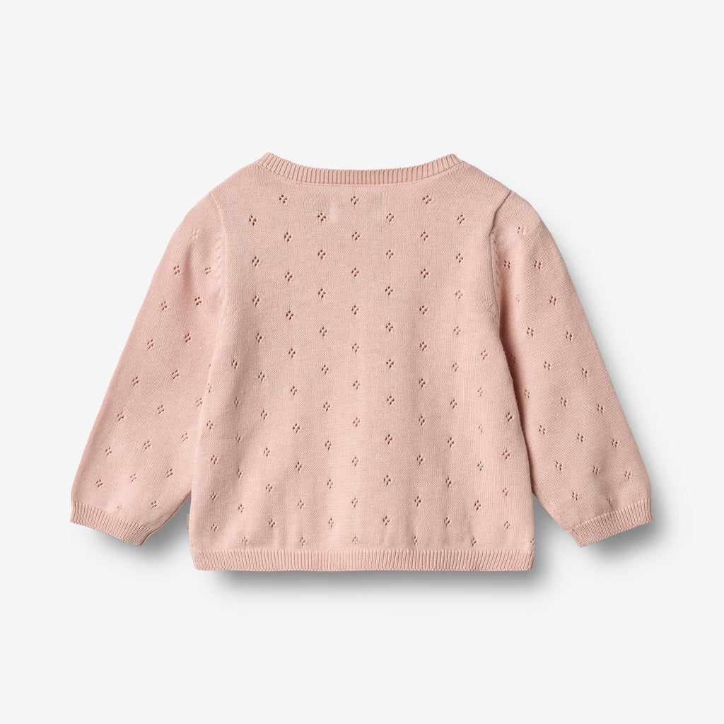 Langærmet strikcardigan i blødt økologisk bomuld til din baby. - Let A-formet- Knapper ned foran- Ribkant ved halsudskæring, ærmer og nederste kant- Sødt strikmønsterWheat's strik er en sand klassiker i løbet af de skiftende sæsoner, da det er blødt og behageligt for baby at have på uden nogen form for kløe. Wheat's strik har et klassisk look med en afslappet pasform, som gør det let at style udover en body eller kjole. Den er også perfekt som et ekstra lag under jakken.