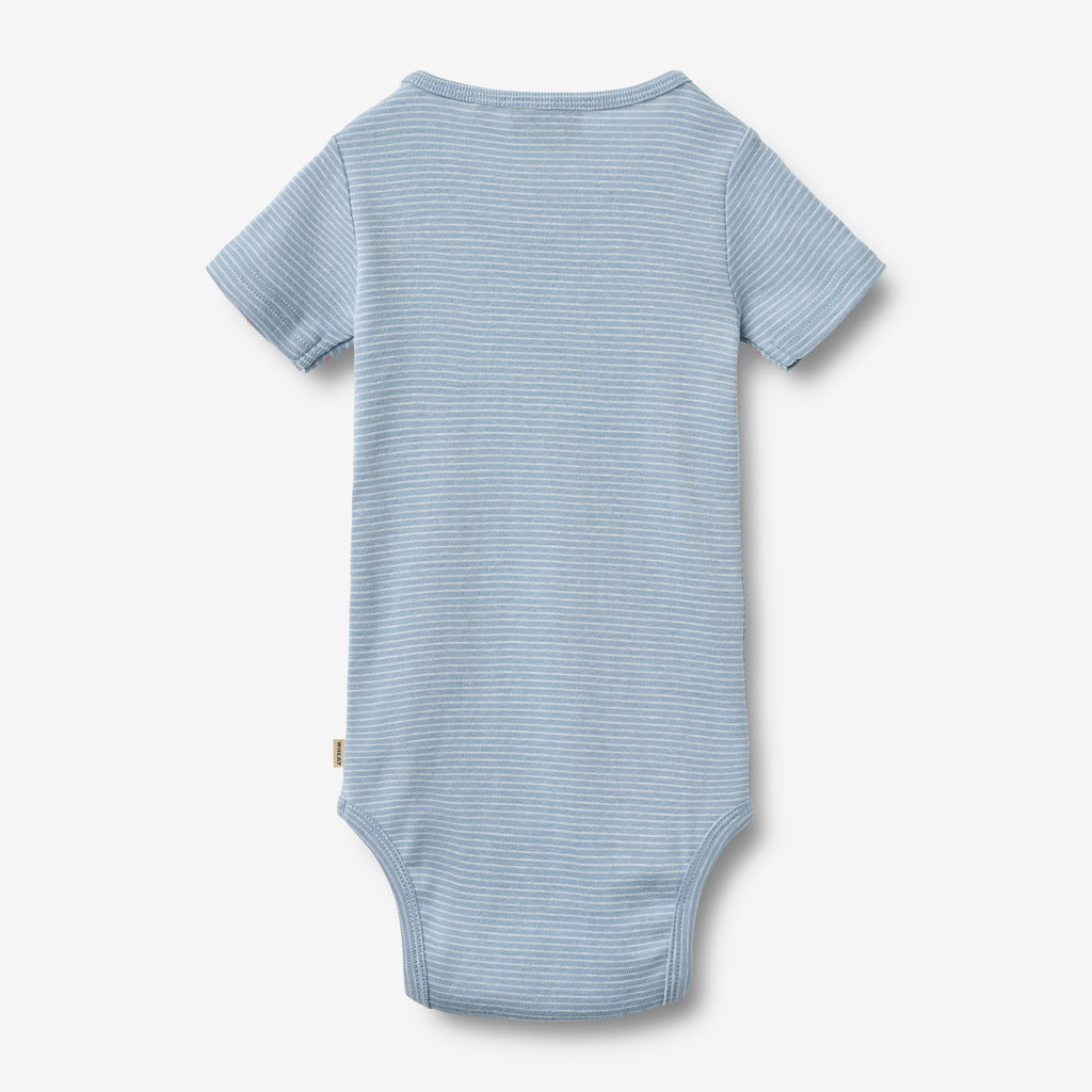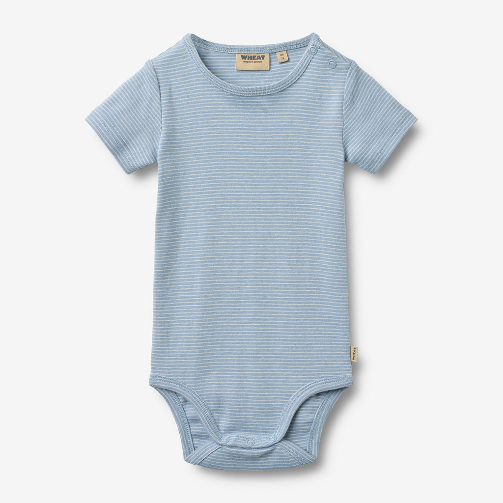 Kortærmet basis body med striber i økologisk bomuld til baby.- Tæt pasform- Trykknapper på den ene skulder- Trykknapper i bunden ved benene- StribetWheats skønne bodyer er designet til unisex og er en sand klassiker i ethvert hjem med småbørn. Denne body har trykknapper på den ene skulder samt i bunden for bedre komfort, når du skal klæde dit barn på. Brug bodyen som den inderste del i ethvert outfit, da den er blød at have tæt på huden.