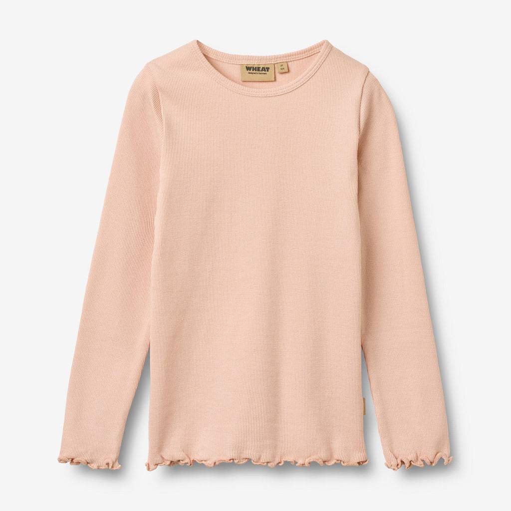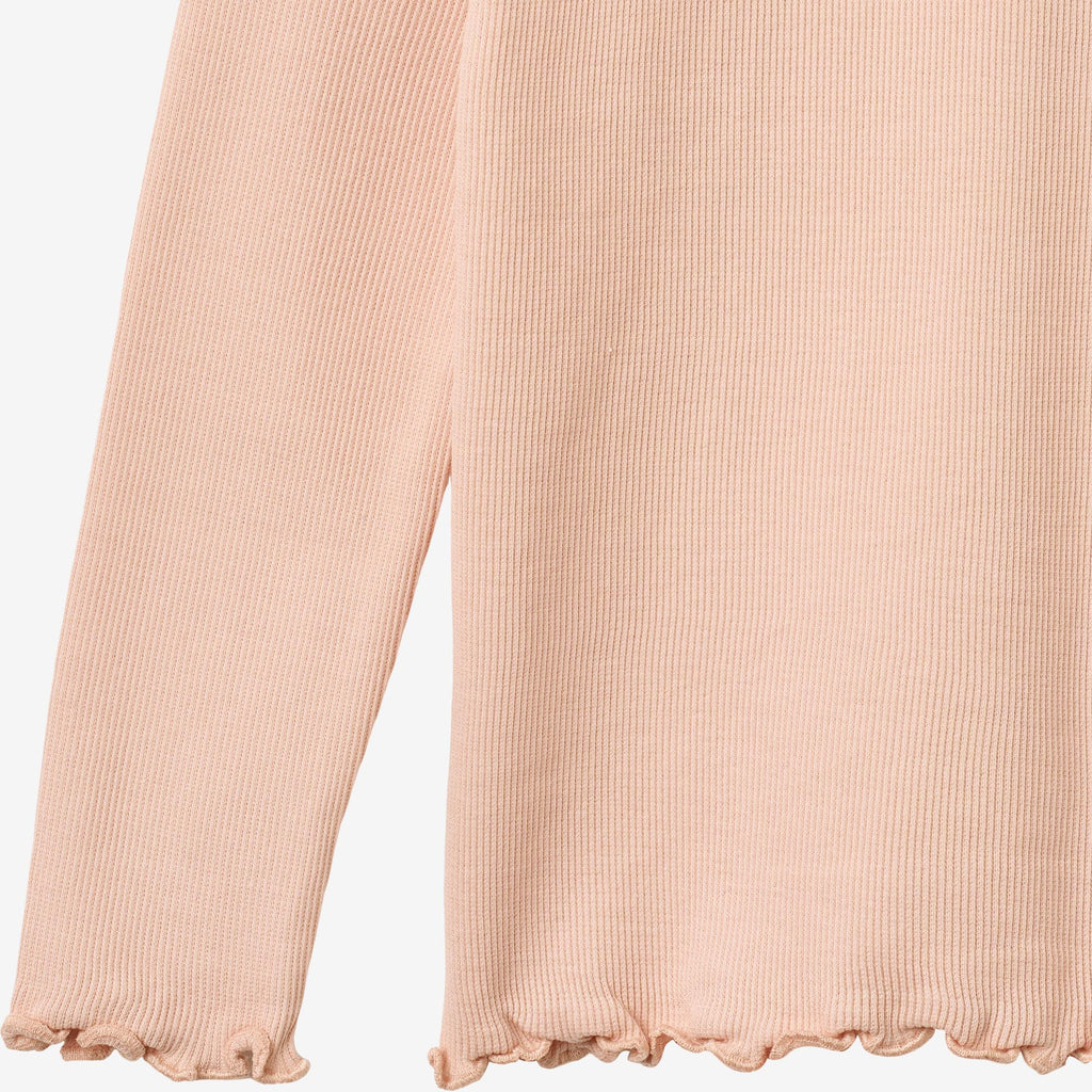 Langærmet rib T-shirt i økologisk bomuld til børn.- Basis style- Figursyet og strækbar- Rund halsudskæring med blød rib- Overlockede kanter ved manchet og i kanten rundt i bunden- RibstrukturT-shirts bør være en fast del af dit barns garderobe, da T-shirtsene er bløde og behagelige for dit barn at have på. De kan nemt styles sammen med et par bukser eller en nederdel, eller med en strik ovenpå afhængigt af vejret og lejligheden. Det er også perfekt som et ekstra lag under en kjole eller overalls på koldere dage.