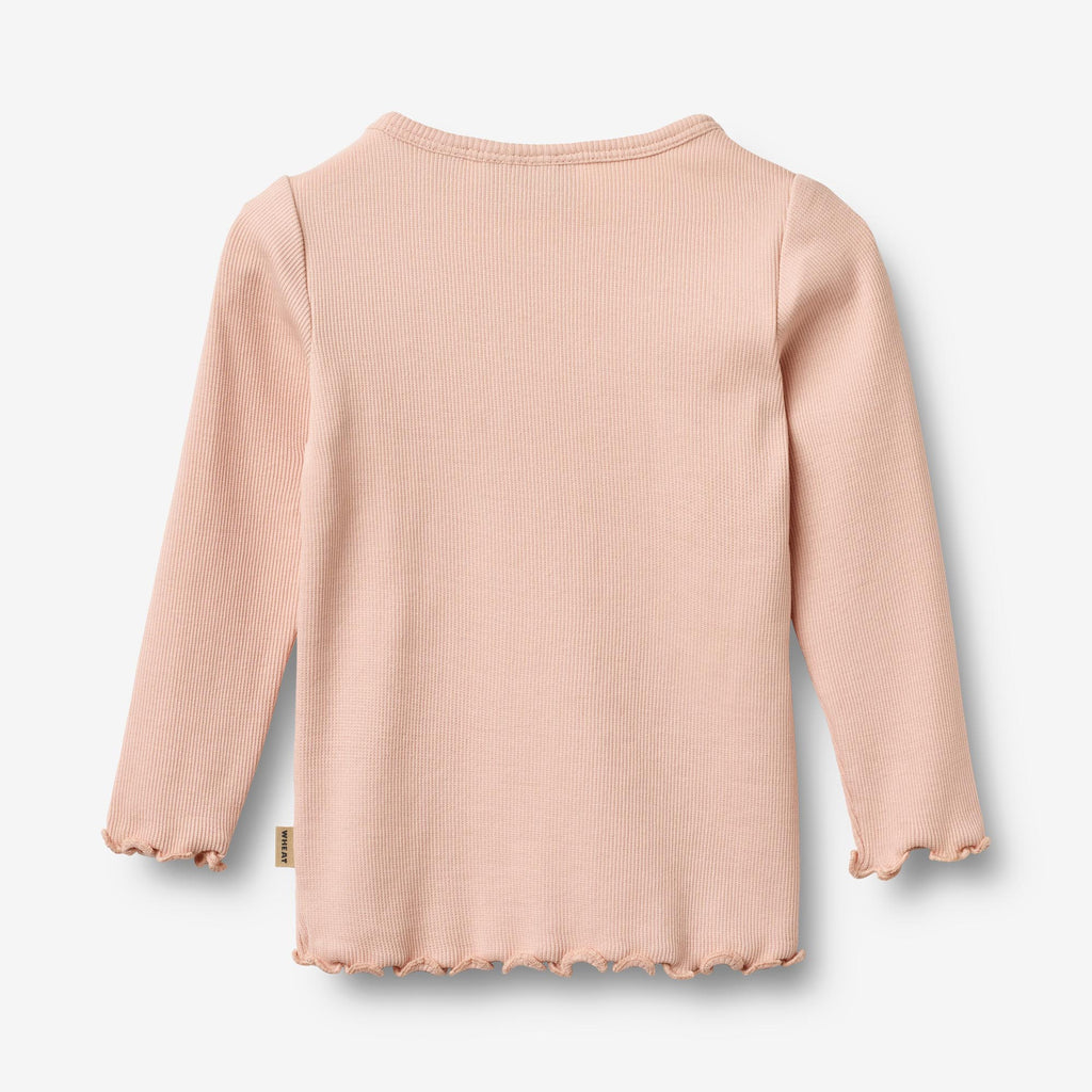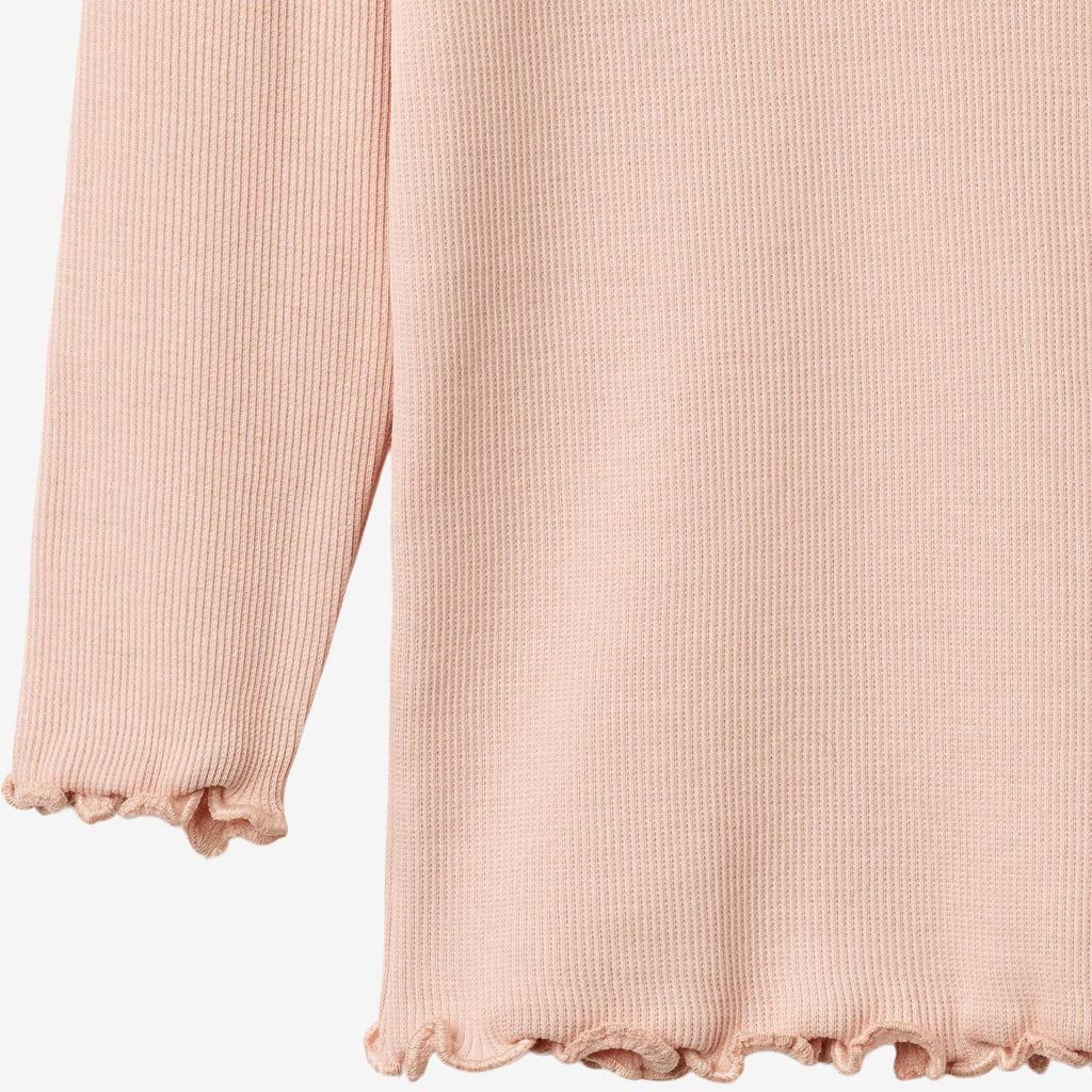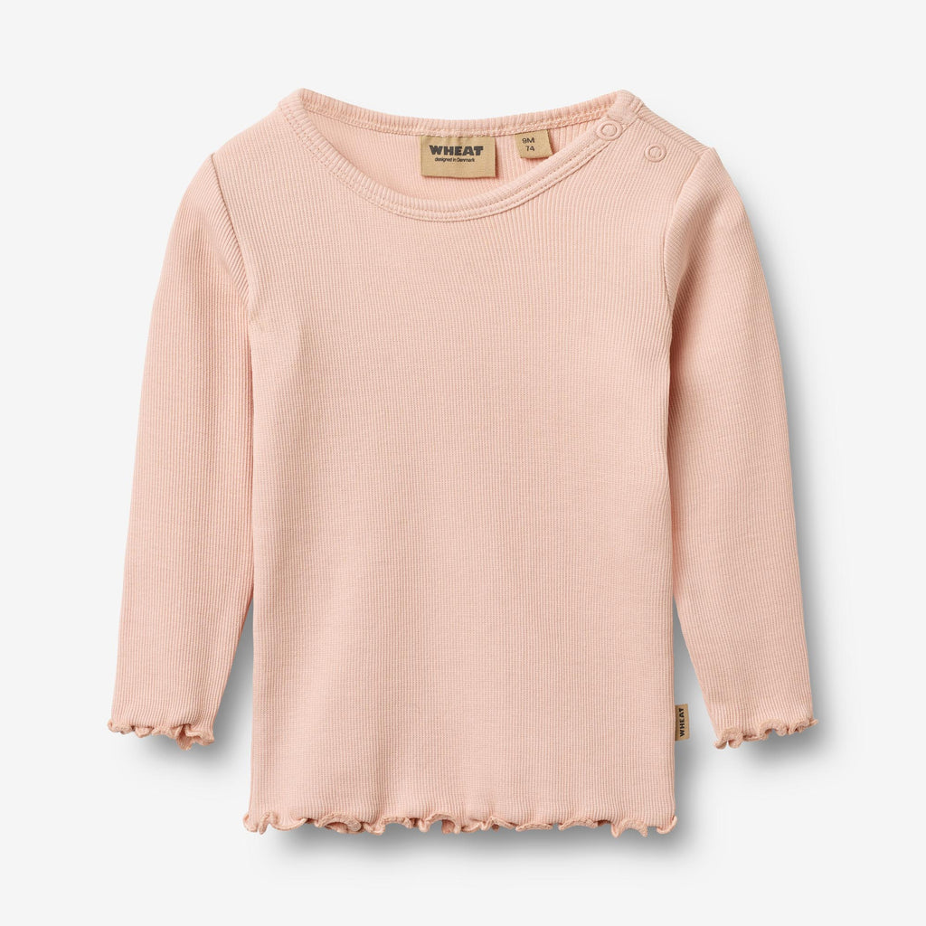 Langærmet rib T-shirt i økologisk bomuld til børn.- Figursyet og strækbar- Rund halsudskæring med blød rib- Overlockede kanter ved manchet og i kanten rundt i bunden- RibstrukturWheat's T-shirts bør være en fast del af dit barns garderobe, da T-shirtsene er bløde og behagelige for dit barn at have på. De kan nemt styles sammen med et par bukser eller en nederdel, eller med en strik ovenpå afhængigt af vejret og lejligheden. Det er også perfekt som et ekstra lag under en kjole eller overalls på koldere dage.