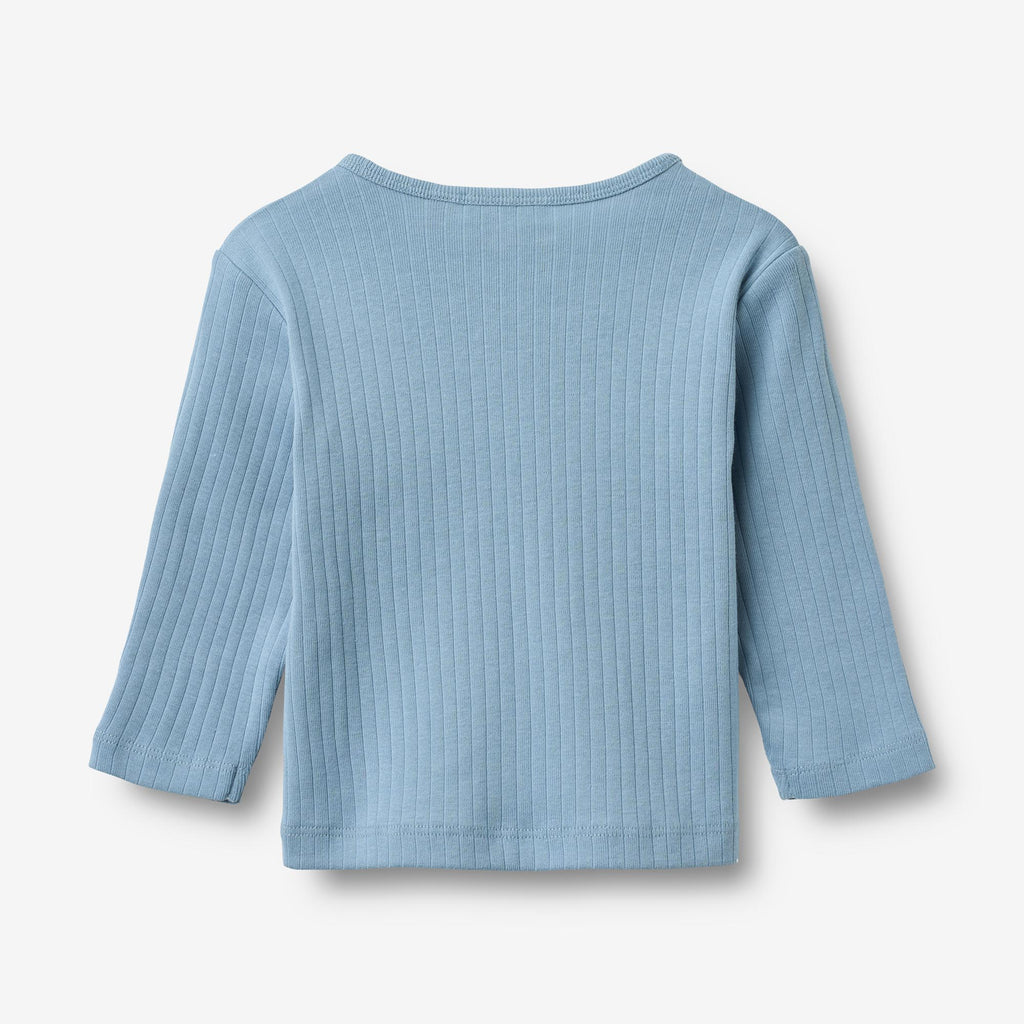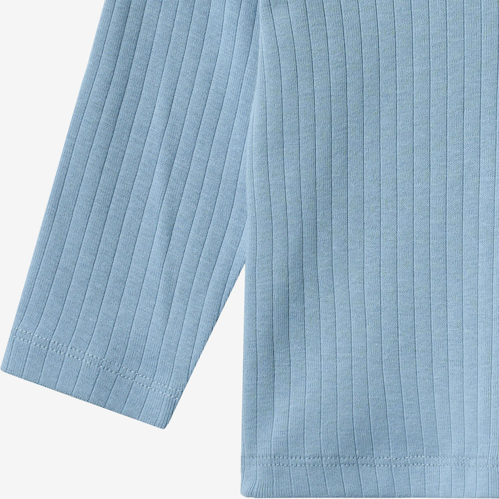 Langærmet rib T-shirt i blød økologisk bomuld til babyer. - Normal pasform- Placket foran med knapper- Oversized skuldre- Lange ærmer- Ribbet strukturDenne klassiske rib T-shirt er lavet af blød økologisk bomuld, hvilket sikrer en behagelig og åndbar pasform til hverdagsbrug. Designet med et tidløst udseende og en blid strækning tillader det nem bevægelse, hvilket gør det til et alsidigt basiselement i dit barns garderobe. Perfekt til lag-på-lag eller solo-bær, er denne T-shirt ideel til enhver årstid.