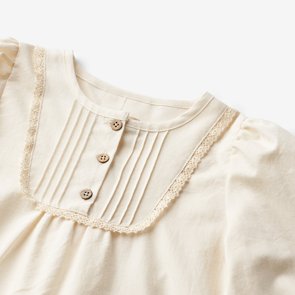 Skøn natkjole med et strejf af Lucia vibes i økologisk bomuld til børn.- A-formet- Langærmet- Rynk ved manchetter- Knaplukning med tre knapper ned foran- Flere fine blondedetaljerWheats yndige natkjole med blondedetaljer er skabt til at sprede magisk julestemning. Med sin bløde pasform er den både let og behagelig for dit barn at have på. Den fine natkjole er også perfekt til Luciaoptog i den søde juletid.