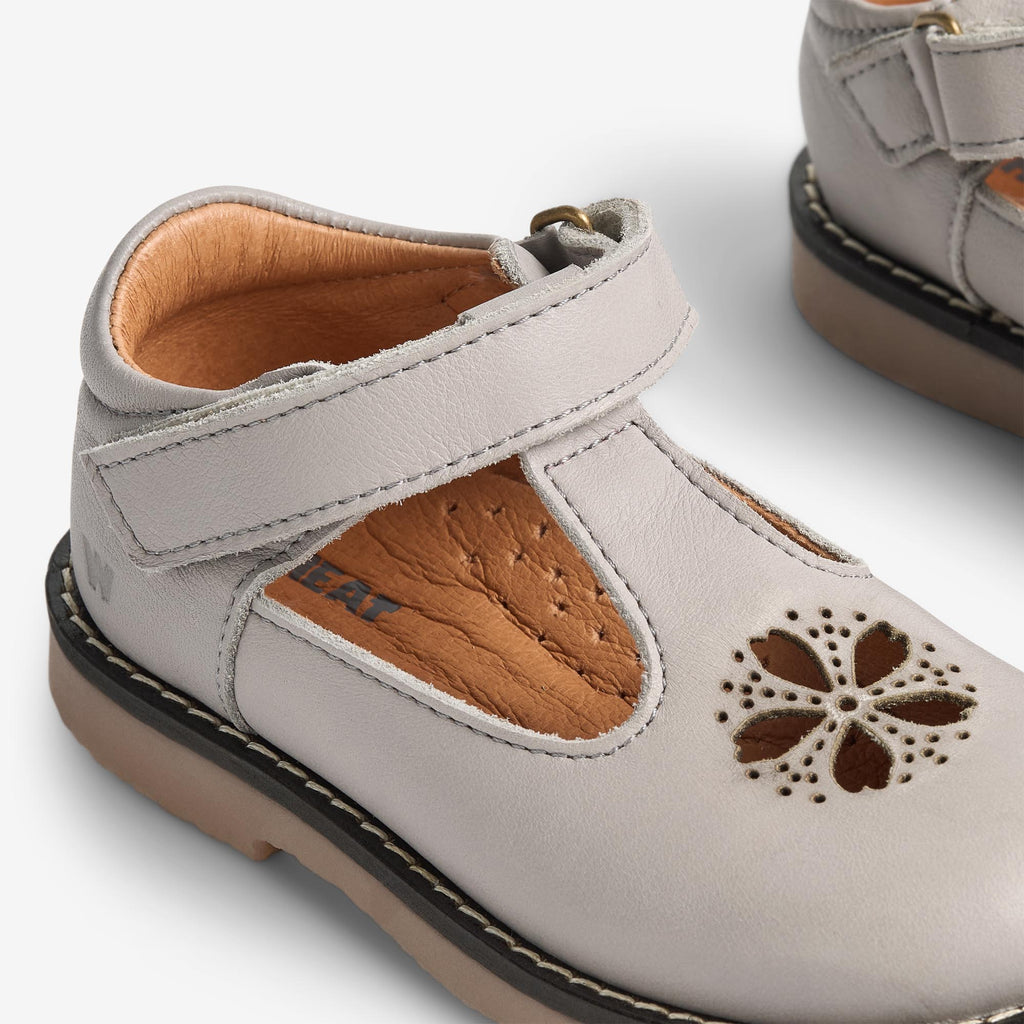 Smuk Mary Jane sandal i læder, designet til naturlig bevægelse og med fine, dekorative detaljer.- Justerbar velcrolukning for nem af- og påtagning- Læder fra LWG (Leather Working Group)-certificerede garverier- Perforeret blomsterdetalje ved tåen- Krom- og metalfri læderforing for god åndbarhed- Blød latex-indersål med naturlig affjedring- Let TPR (Thermoplastic rubber) crepegummisål med klassisk stikning- Lille hæl for et tidløst udtrykFremstillet i LWG-certificeret læder og kombinerer hverdagskomfort med et elegant udtryk. Perfekt til pænere lejligheder – og samtidig behagelig nok til hverdagsbrug.Anbefalet voksetillæg: 1-1,5 cm