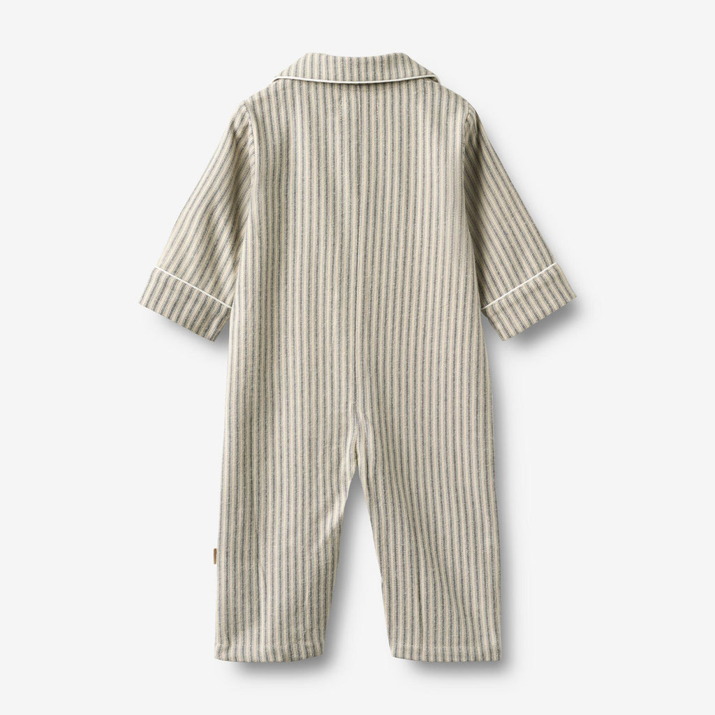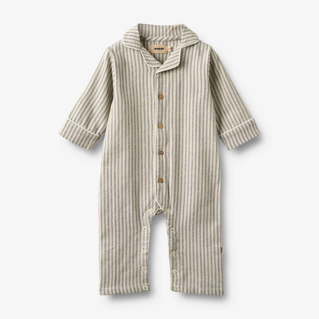 Langærmet stribet natdragt i blødt økologisk bomuld til din baby.- Normal pasform- Fin lille krave - Knapper ned foran- Stribet vævet stofWheats søde natdragt bringer noget sødt ind i din babys garderobe. Dragten er behagelig at have på og er perfekt til de kølige juledage derhjemme.