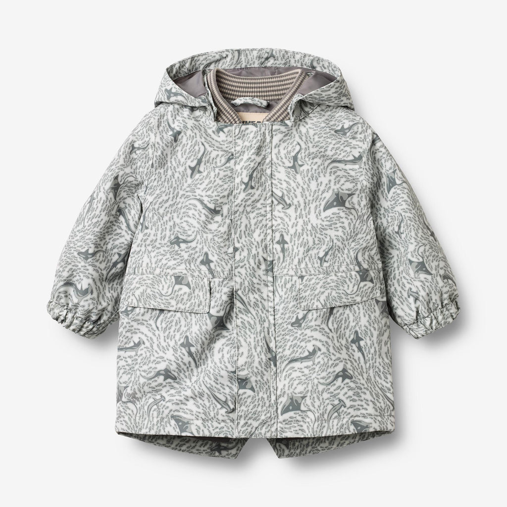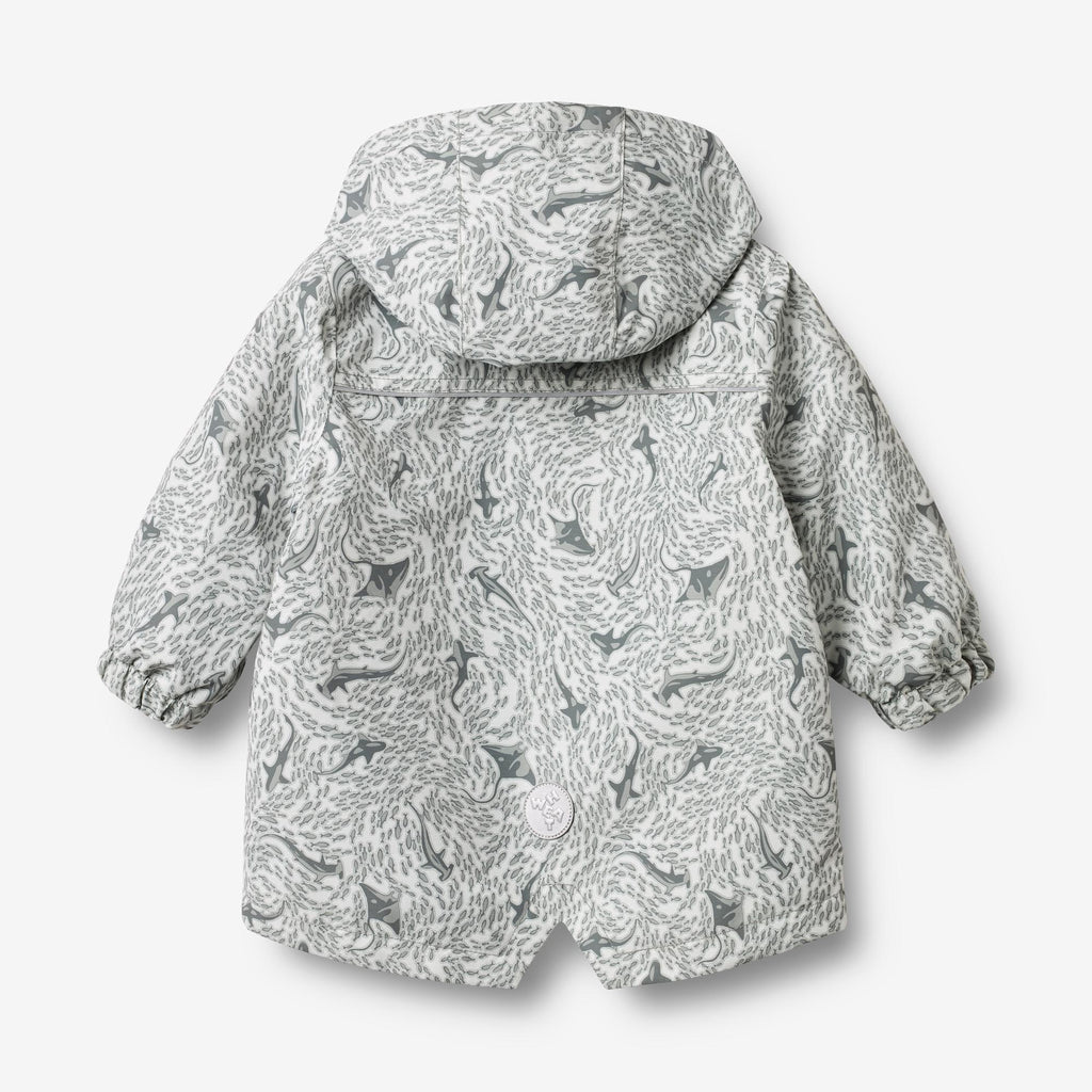 Printet teknisk jakke i vandtæt og åndbart materiale til babyer.