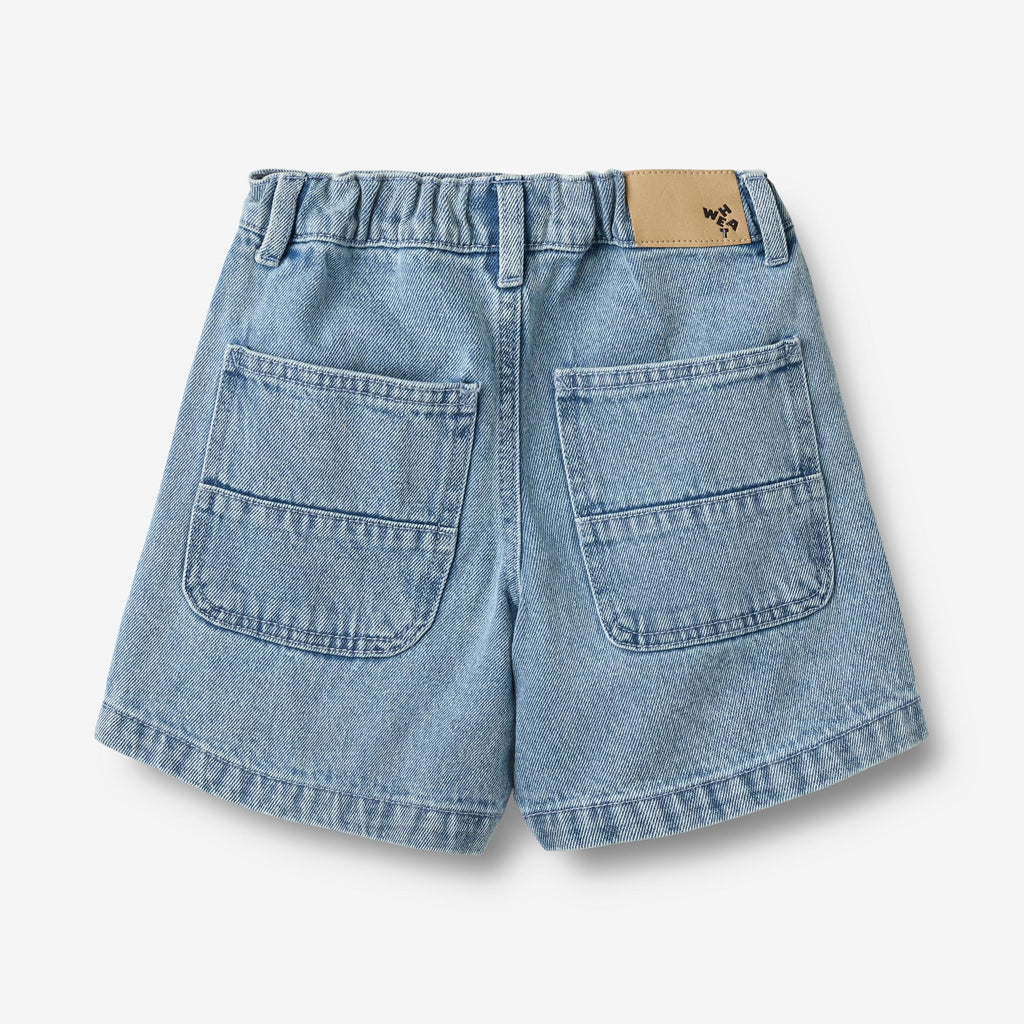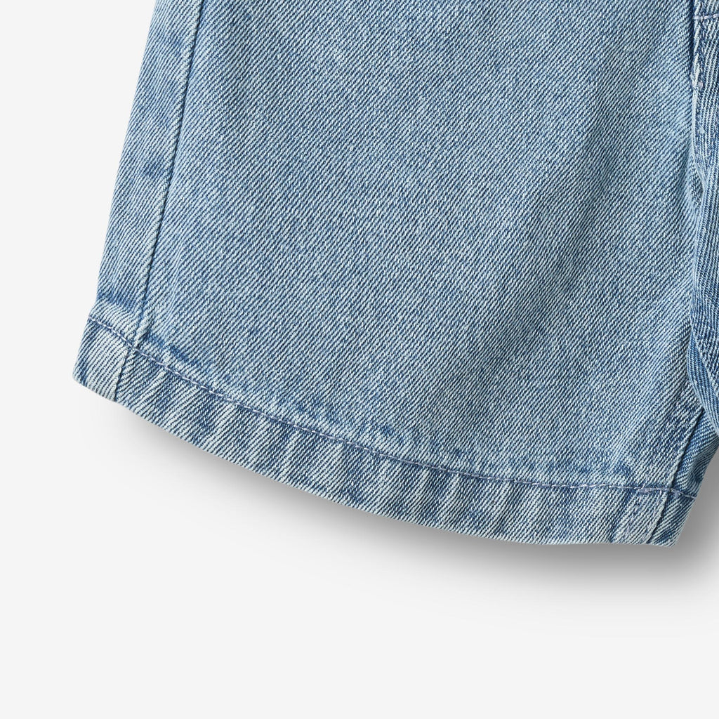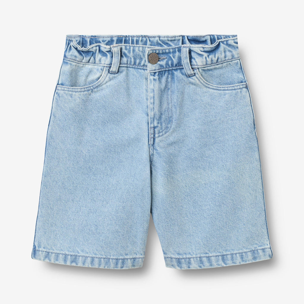 Cool denim shorts i økologisk bomuld til børn. - Justerbar elastik i taljen- Vidde i ben- Sidelommer- Lommer bagpå- Gylp med lynlås og knap- UnisexWheat's cowboy shorts bør være en fast del af dit barns daglige garderobe. Den afslappede pasform gør shortsene behagelige for dit barn at have på og de kan nemt styles med en af vores T-shirts, toppe eller strik til hverdag. De er også perfekte til specielle lejligheder, hvor du kan dresse dem op med en skjorte eller bluse for at fuldende det cool look.