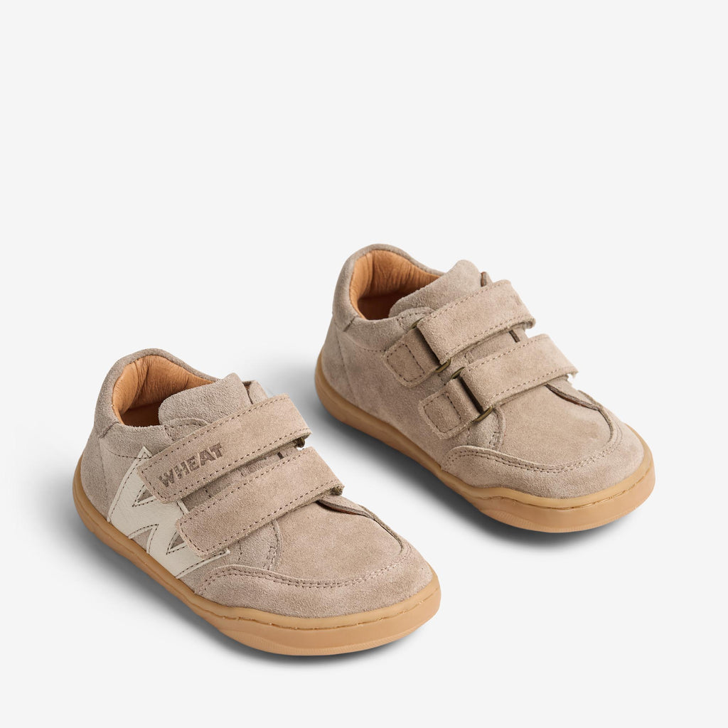Wheats barfodssneaker understøtter naturlig fodbevægelse med et letvægts-, fleksibelt design og en bred pasform til voksende fødder. Dobbelte velcrostropper gør skoen let at tage på og justere.