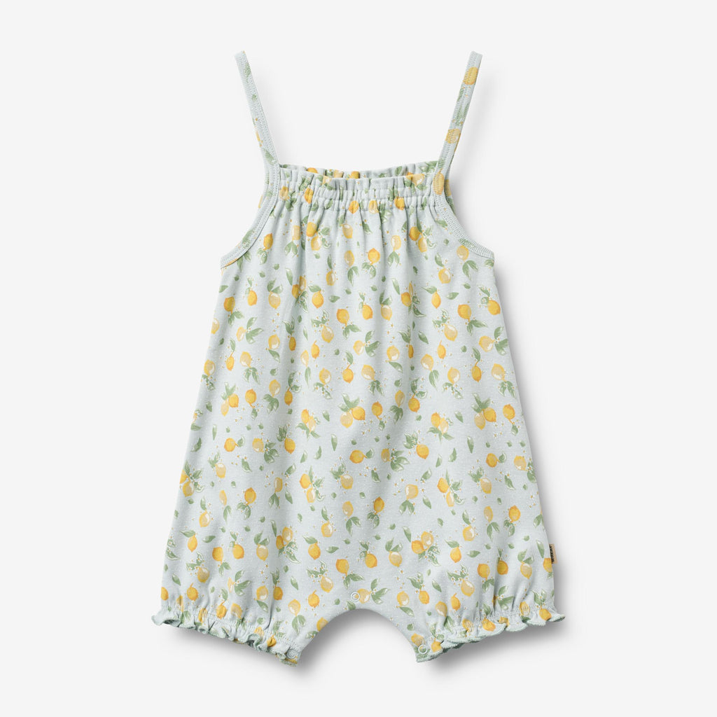 Printet ærmeløs sommerdragt med smock og korte ben i blødt økologisk bomuld til babyer.- Løs pasform- Tynde stropper- Smockdetaljer ved bærestykket med masser af samlinger- Elastiske benkanter med samlinger- Trykknapper ved skridtet- SignaturprintVores søde sommerdragter er behagelige for dit barn, når sommerens varme melder sig. Dragten har praktiske trykknapper i skridtet, så det bliver nemt og hurtigt at klæde din baby på. Den kan bruges alene på varme dage eller kombineres med en T-shirt eller body og strømpebukser, når vejret bliver lidt køligere.