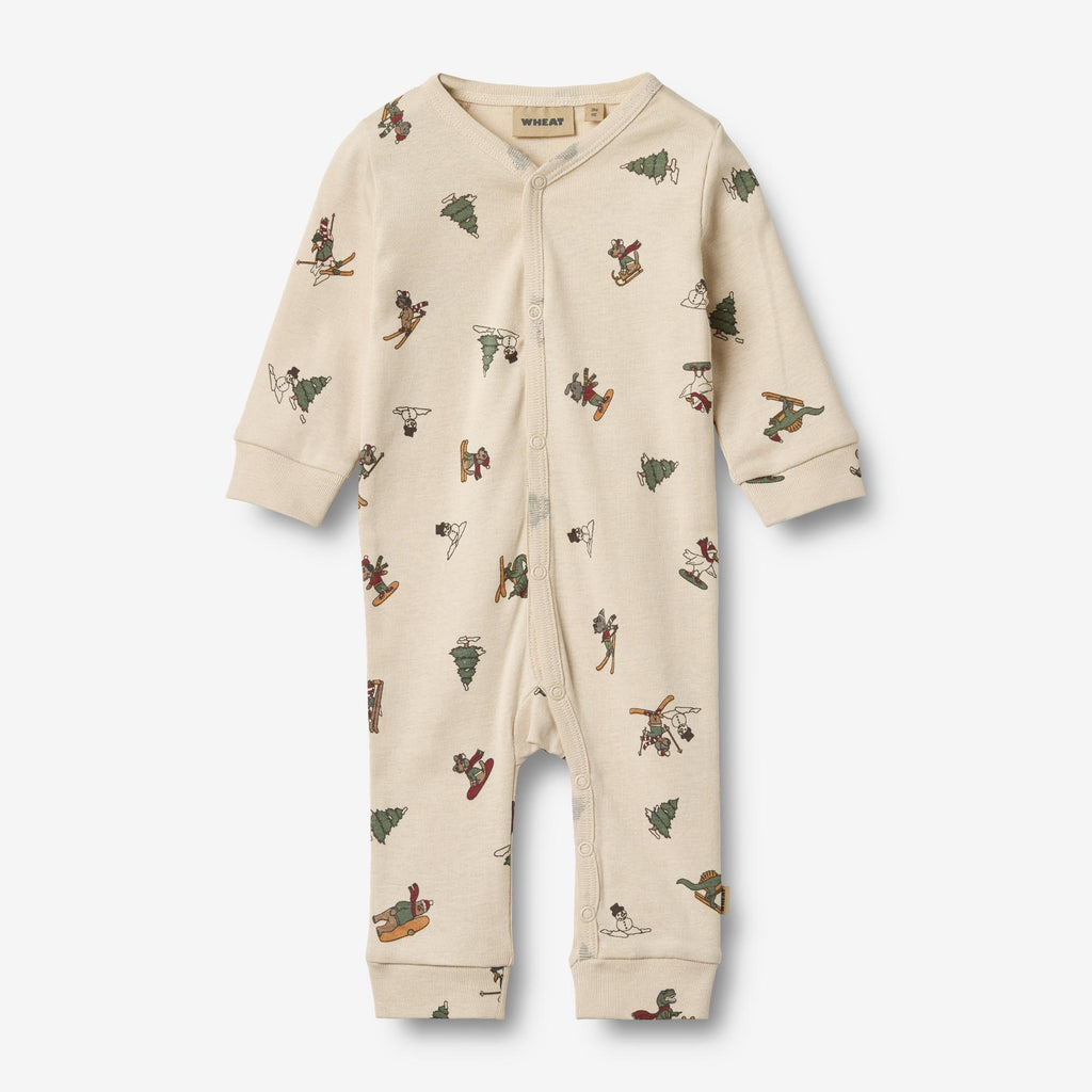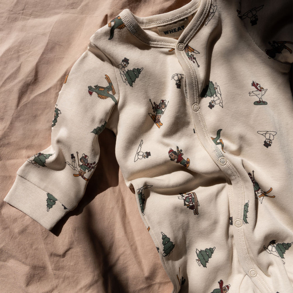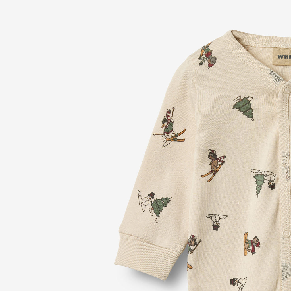 Langærmet heldragt med julemotiver i blødt økologisk bomuld til din baby.- Normal/Løstsiddende pasform- Trykknaplukning ned ad fronten og langs indersømmen- Brede manchetter ved håndled og ankler- Signaturprint med julemotiverWheats heldragt med julemotiver er perfekt til søde juledage indendørs. Den har trykknapper ned ad fronten og langs indersømmen på benene, hvilket gør det lettere for dig at klæde din baby på. Heldragten kan bruges alene om natten eller som et ekstra lag under hverdagstøj.