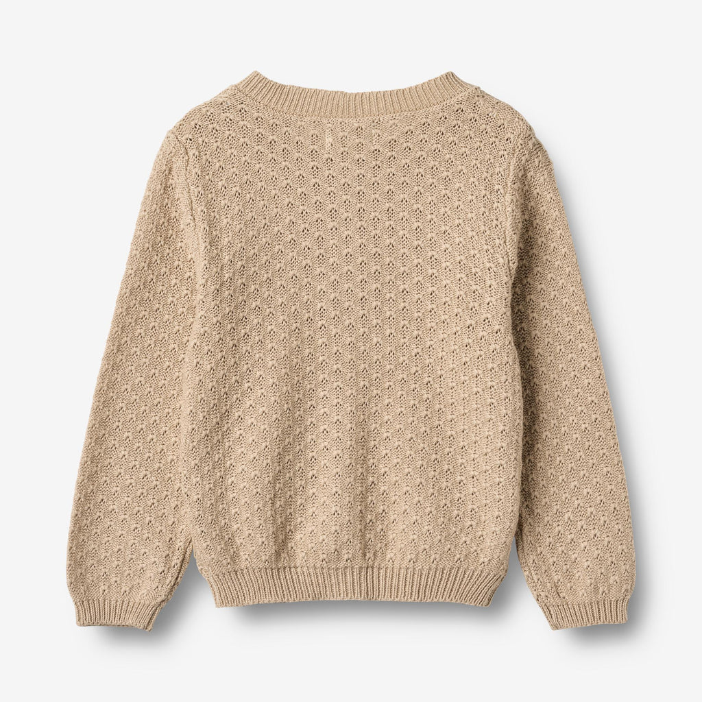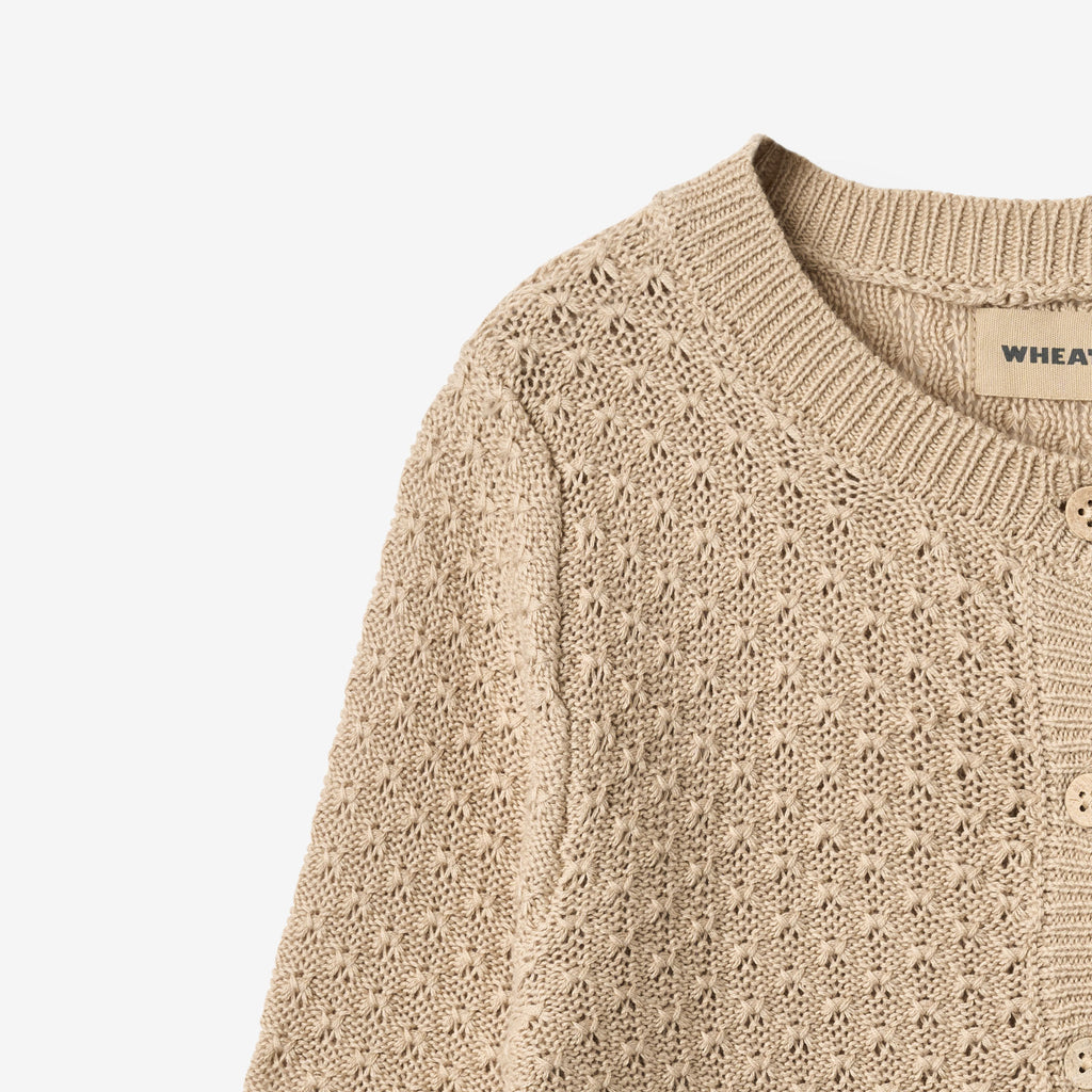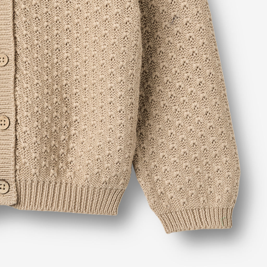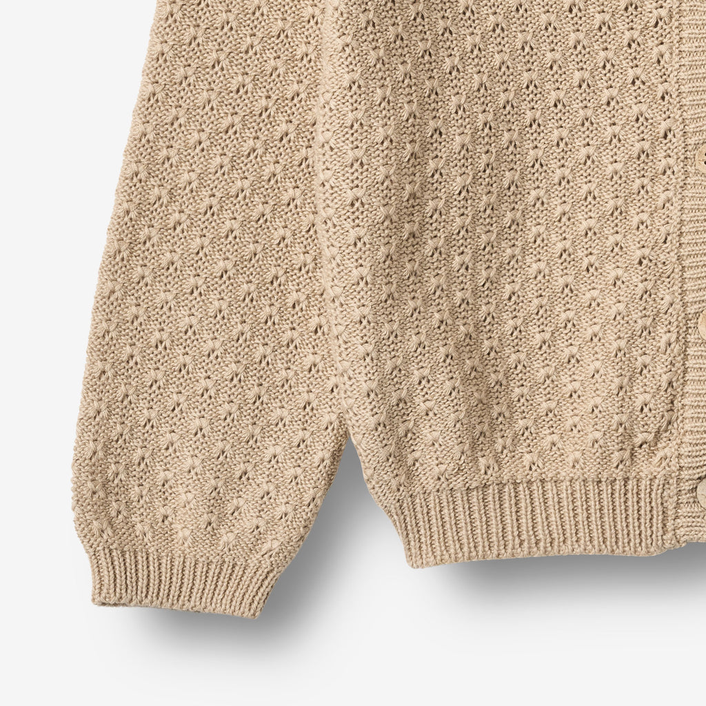 Langærmet strikcardigan i blødt økologisk bomuld til børn.- Knapper ned foran- Ribkant ved halsudskæring, manchetter og nederste kant- Struktureret strikmønsterStrik er uundværligt i de skiftende sæsoner, da det er blødt og behageligt for dit barn at have på uden nogen form for kløe. Denne cardigan har et klassisk look med en afslappet pasform, der gør den nem at style over en t-shirt, skjorte eller kjole. Alt i alt en sikker vinder i dit barns garderobe.