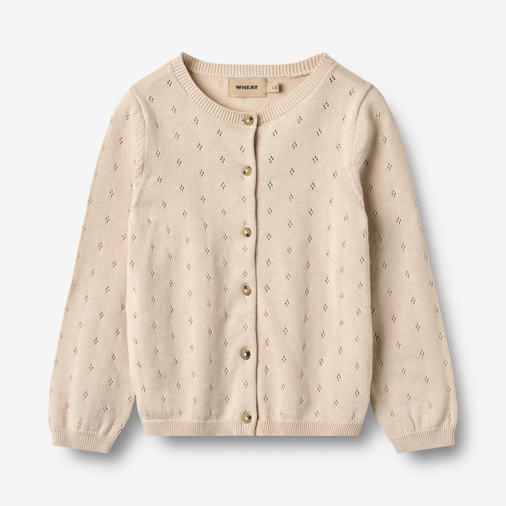 Langærmet strikcardigan i blødt økologisk bomuld til børn.
