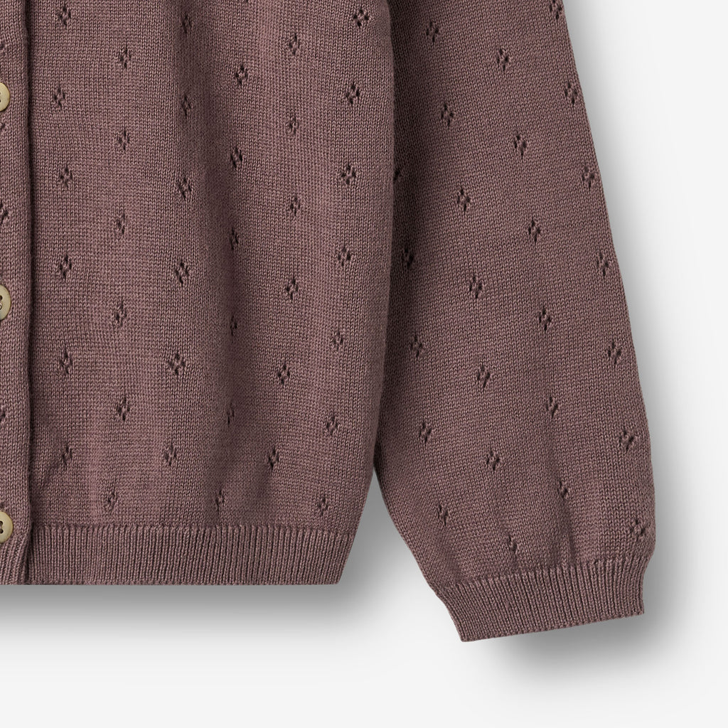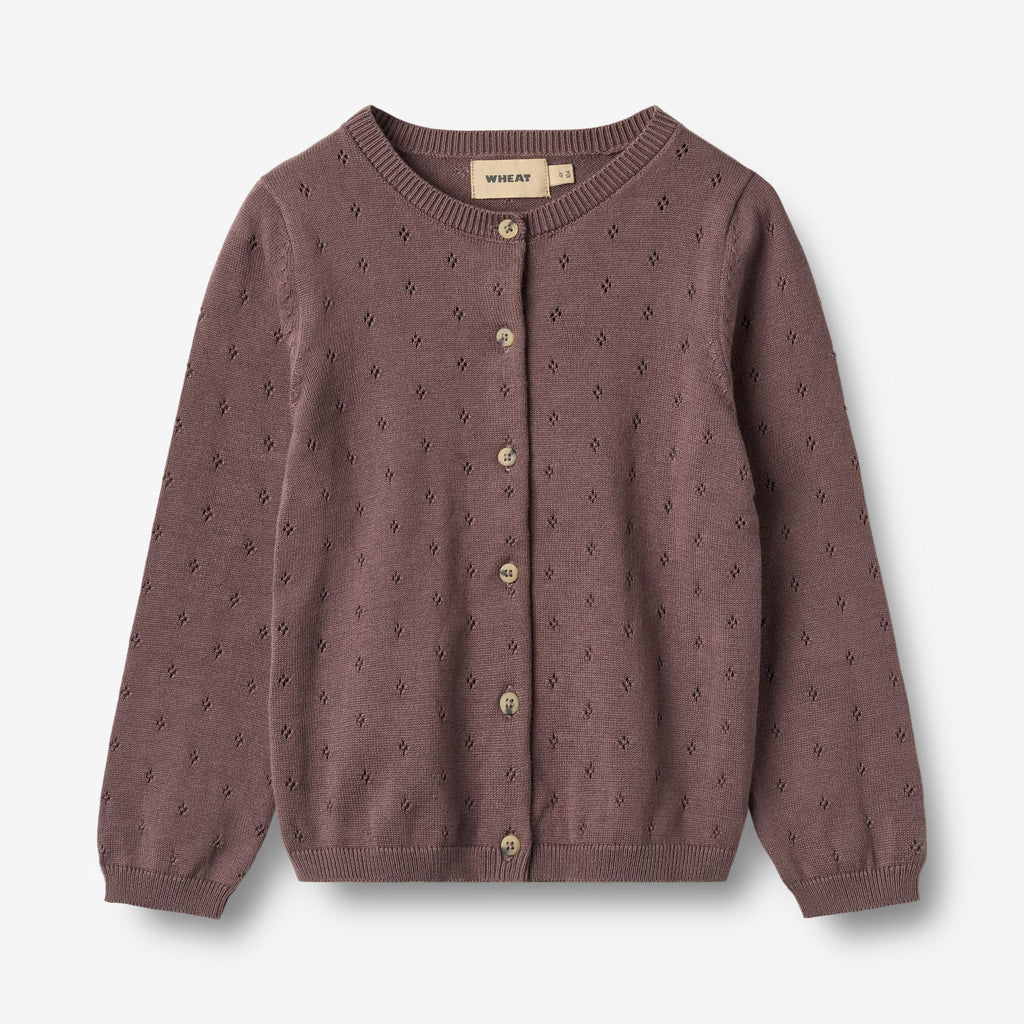 Langærmet strikcardigan i blødt økologisk bomuld til børn.- Let A-formet- Knapper ned foran- Ribkant ved halsudskæring, ærmer og nederste kant- Sødt strikmønsterStrik er en sand klassiker i løbet af de skiftende sæsoner, da det er blødt og behageligt for dit barn at have på uden nogen form for kløe. Denne strik har et klassisk look med en afslappet pasform, som gør det let at style sammen med en af vores t-shirts, skjorter eller kjoler.
