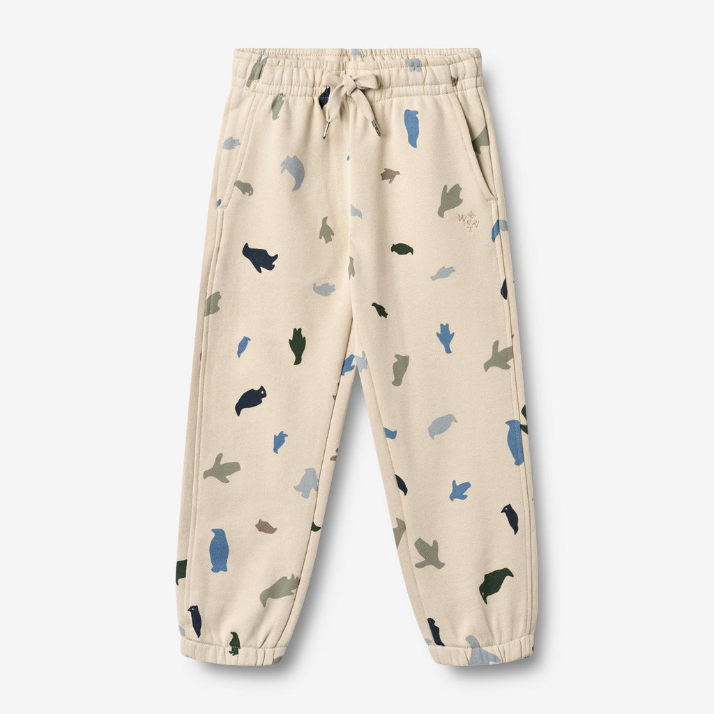 Løstsiddende sweatpants med print i blødt økologisk bomuld til børn.- Almindelig/løs pasform- Bomuldssnøre i taljen- Elastik i taljen samt i benene forneden - Sidelommer- Et lille broderet logo på forsiden- Wheat signaturprintWheat's soft sweatpants er unisex og behagelige for dit barn at have på som både loungewear og til hverdagsaktiviteter. De har et bomuldssnørebånd i taljen og sidelommerne. Sweatpantsene har en løs og afslappet pasform, hvilket giver dem et cool oversized look.