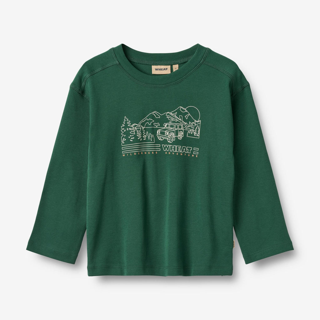 Langærmet T-shirt med frontprint i blødt økologisk bomuld til børn.- Løs pasform- Lav skuldersøm- Wheat signaturprint foranWheat's T-shirts er en sand klassiker i dit barns garderobe, da T-shirtsene er bløde og behagelige at have på. De kan nemt styles med et par bukser samt en strik udover alt afhængigt af vejr og anledning.
