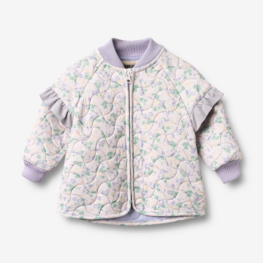 Sød termojakke med flæser og print til baby.