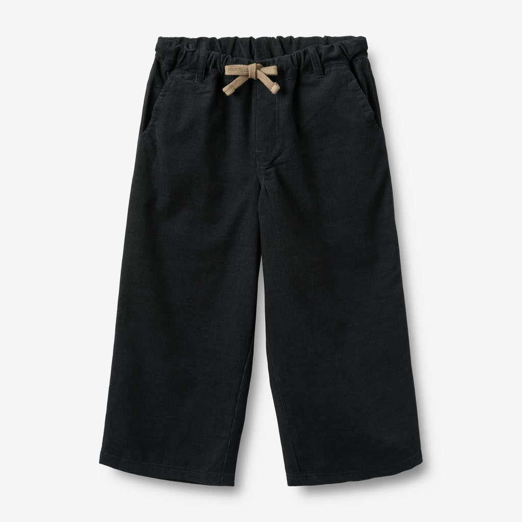 Cool fløjlsbukser i økologisk bomuld til børn. - Normal pasform- Vidde ben- Sidelommer- Falsk lynlåsåbning - Bindebånd samt justerbar elastik i taljen- FløjlWheats pæne bukser i blødt vævet materiale er skabt til at sprede magisk julestemning. Med sin løse pasform er de både lette og behagelige for dit barn at have på hele dagen. De er perfekte at style med en fin basis bluse, skjorte eller striktrøje på de køligere dage – klar til både festlige øjeblikke ude og hverdagsmagi hjemme.