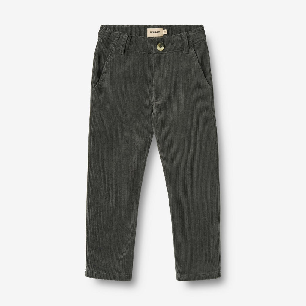 Pæne bukser i økologisk bomuldsfløjl til børn. - Normal/tæt pasform- Skrå sidelommer- Snydelommer bagpå- Gylp med lynlås og metalknap- Justerbar elastik i taljenWheat's bukser er en væsentlig del af dit barns garderobe i efterårs- og vinterhalvåret. Den justerbare elastik i taljen og behagelige pasform gør bukserne til et førstevalg hos dit barn. Bukserne kan nemt styles med en af vores mange T-shirts, skjorter eller striktrøjer til hverdagen.